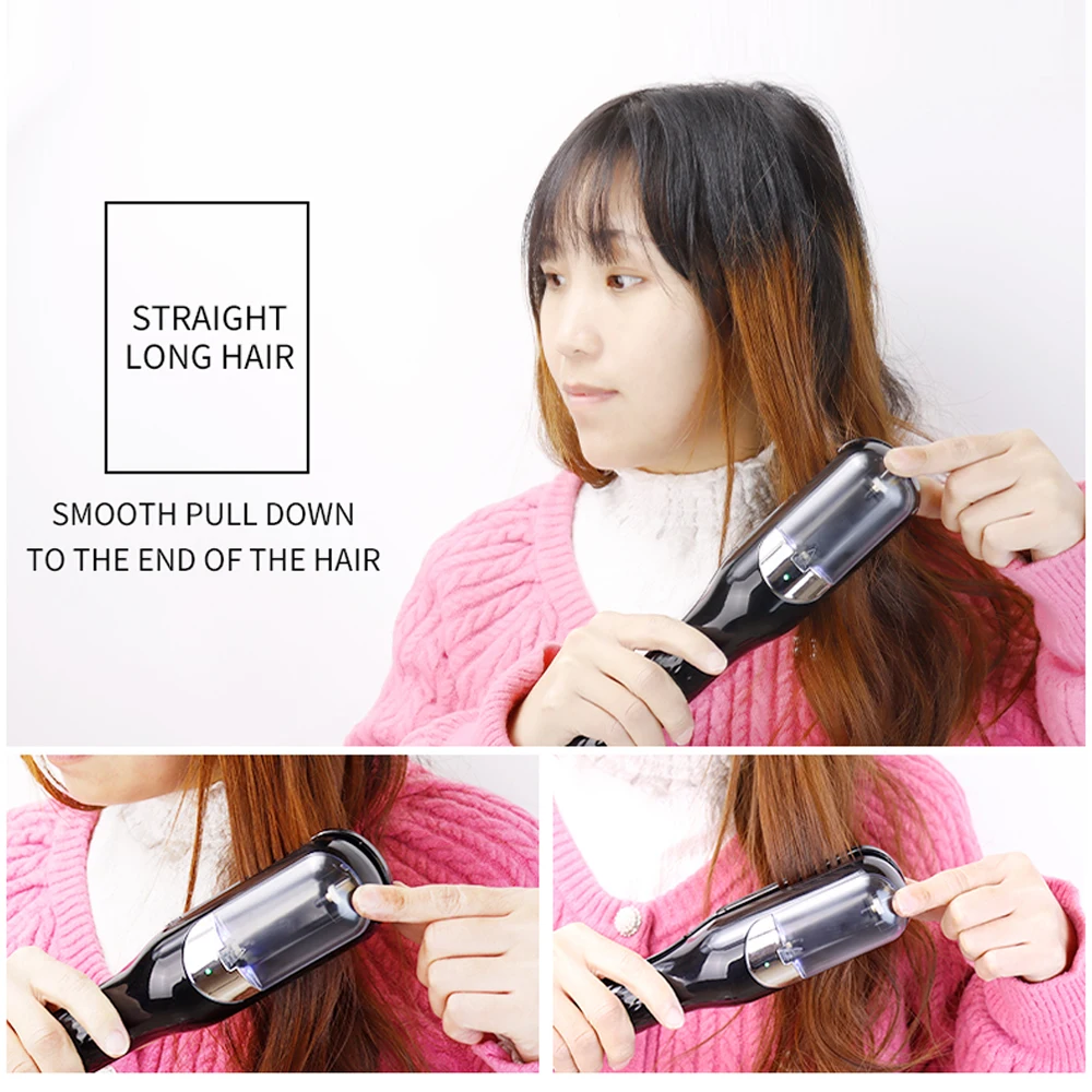 1. The multifunctional automatic hair trimmer integrates the functions of straightening hair and trimming broken hair, which can help you trim the ends of split ends and make hair straight and smooth.