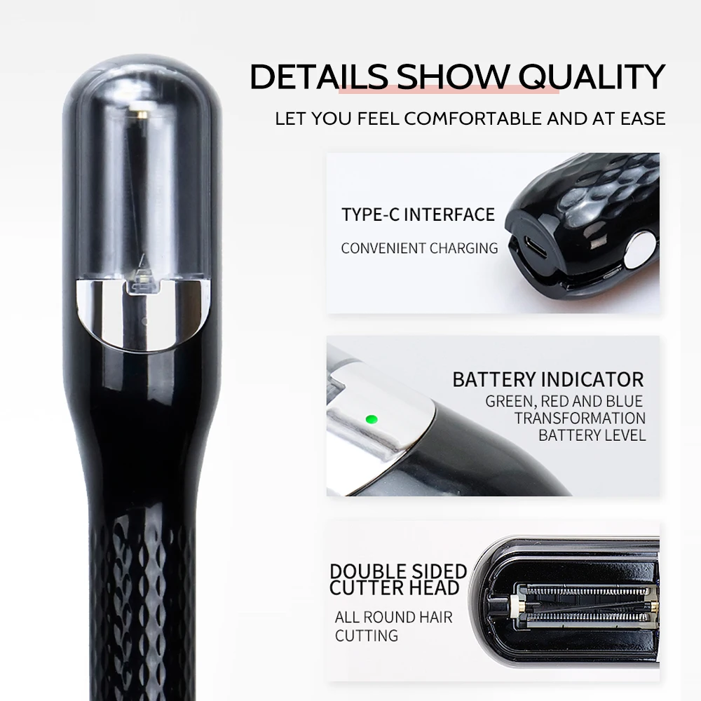 2. Built-in high-speed blades and double-sided cutter heads, this hair trimmer can trim hair tails in all directions without dead ends, and you are not afraid of accidentally hurting your hands.