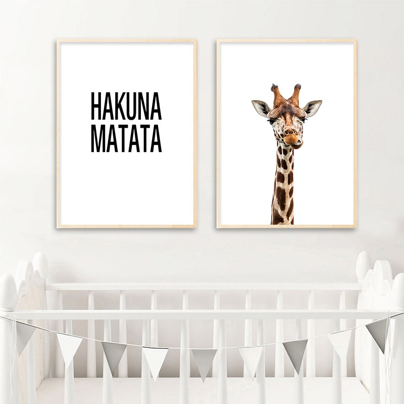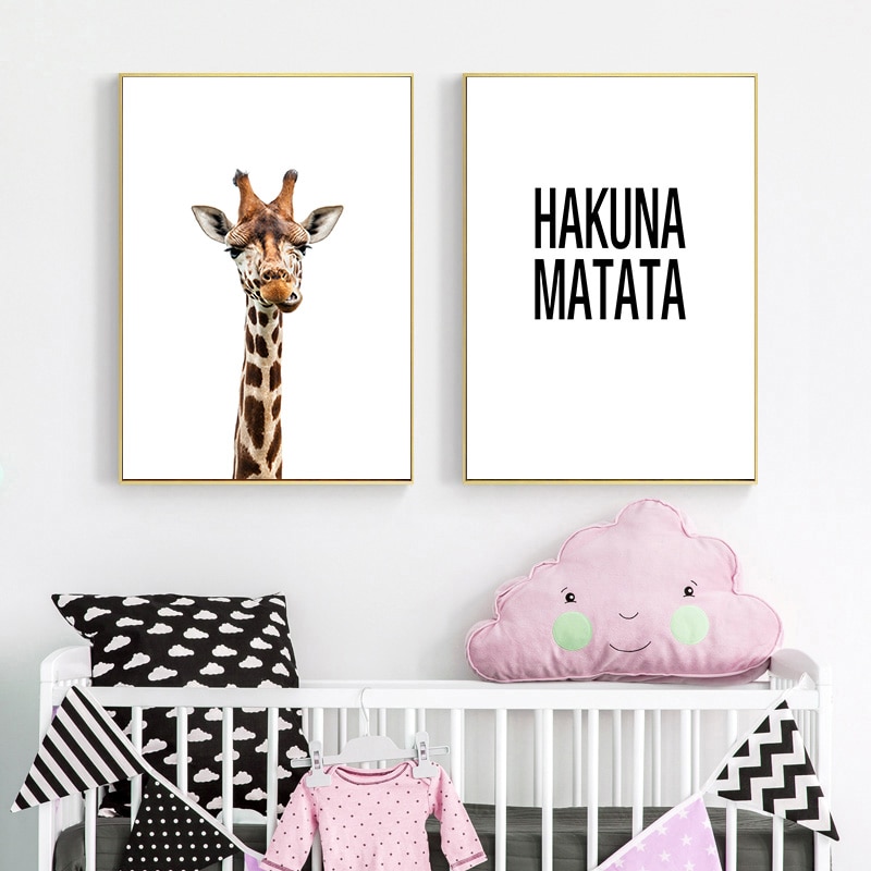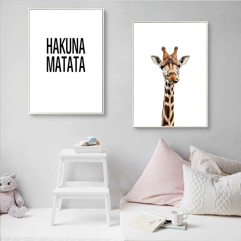 HAKUNA MATATA Baby Nursery Wall Art Canvas Posters An Prints Giraffe Cute Animal Oil Painting for Kids Room Decoration No Frame