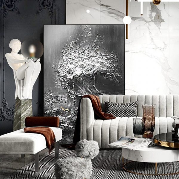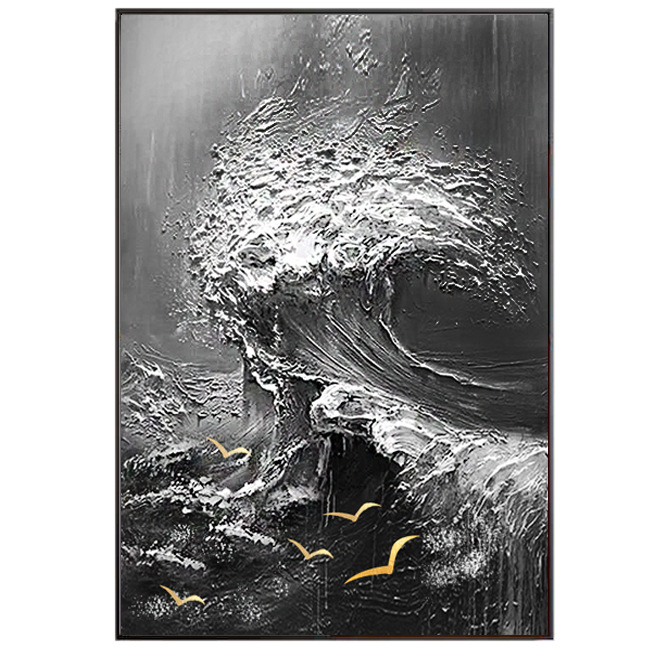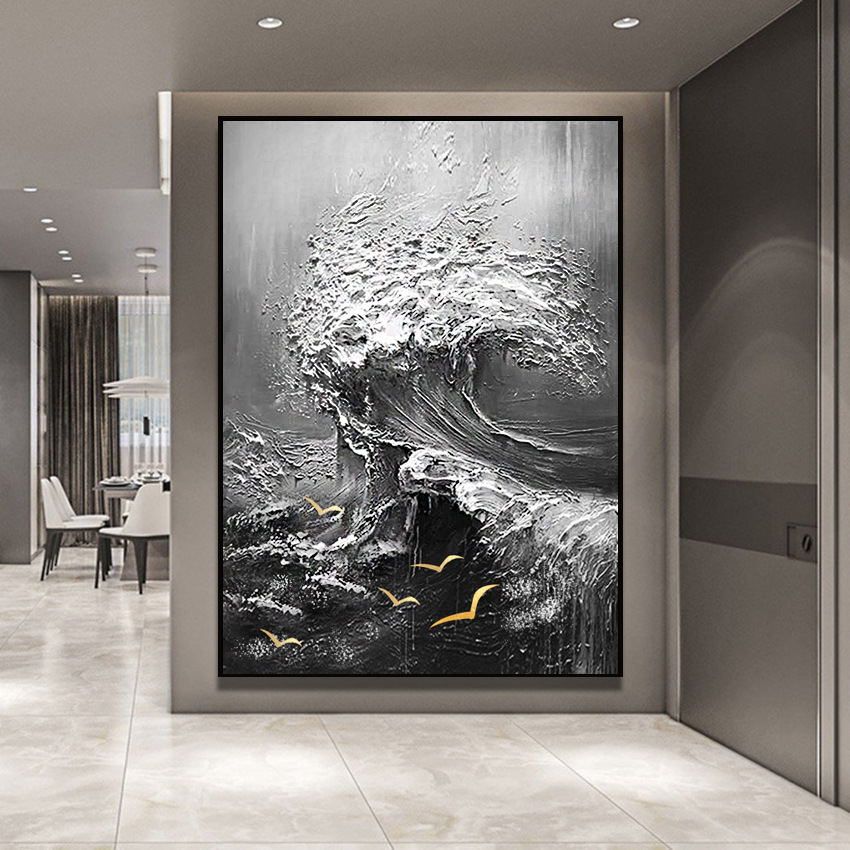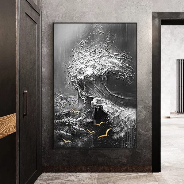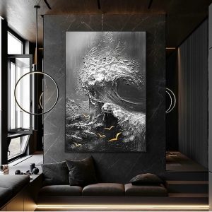 Be the first to review “Hand Painted Oil Painting Sea Singing Modern Decoration Painting Black-and-white Gray Vertical Abstract Hanging Painting”