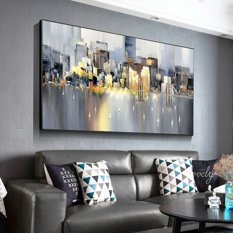 Be the first to review “Hand painted urban architecture landscape oil painting modern art canvas wall poster image living room home decoration”