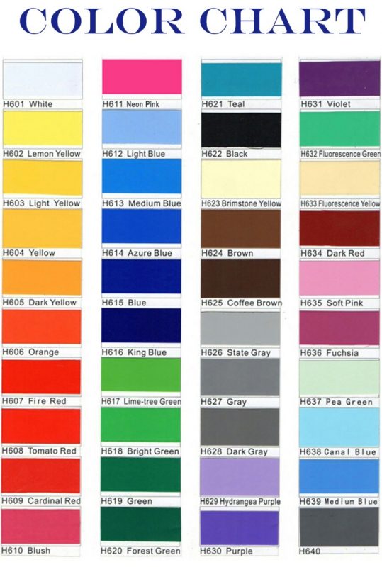 | Color | H622 black, H614 Azure Blue, H627 gray, H619 Green, H635 soft pink, H630 purple, H607 fire red, H601 white, H603 yellow, H624 Brown, H634 Dark Red, H626 State Gray, H621 Teal, Custom Color, Gold, Silver |