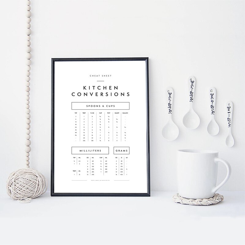 Kitchen Conversions Print Black and White Kitchen Guide Poster Modern Minimalist Wall Art Canvas Painting Dining Room Decoration
