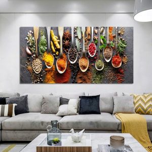 Be the first to review “Kitchen Themed Wall Art Decor Colorful Spice and Spoon In Table Canvas Paintings Food Cooking Ingredients Canvas Art Print Decor”