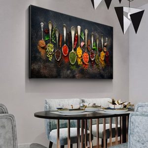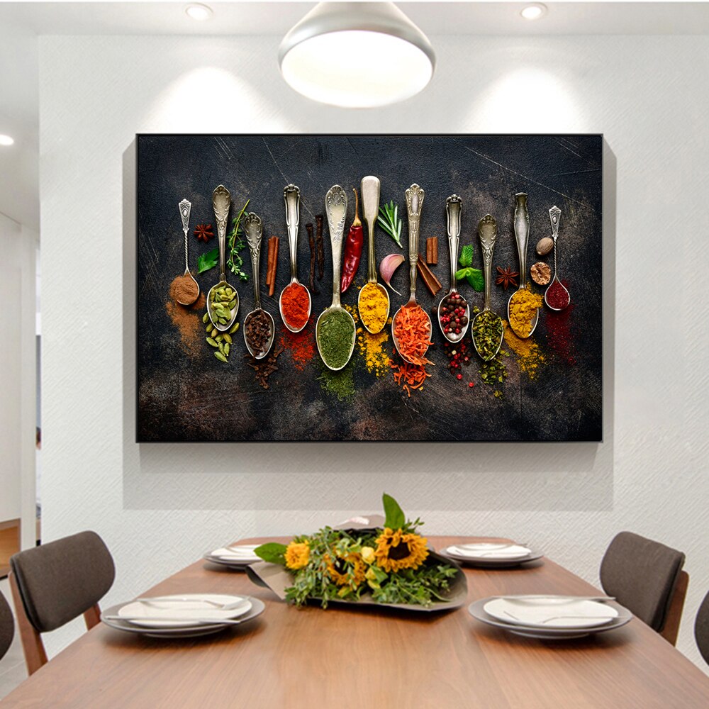 Kitchen Wall Art Grains Spices Spoon Peppers Canvas Painting Posters and Prints Wall Art Pictures for Dining Room Decor Cuadros