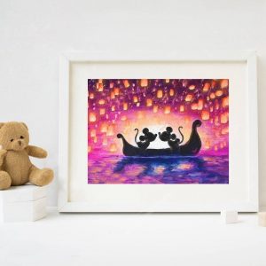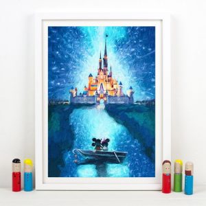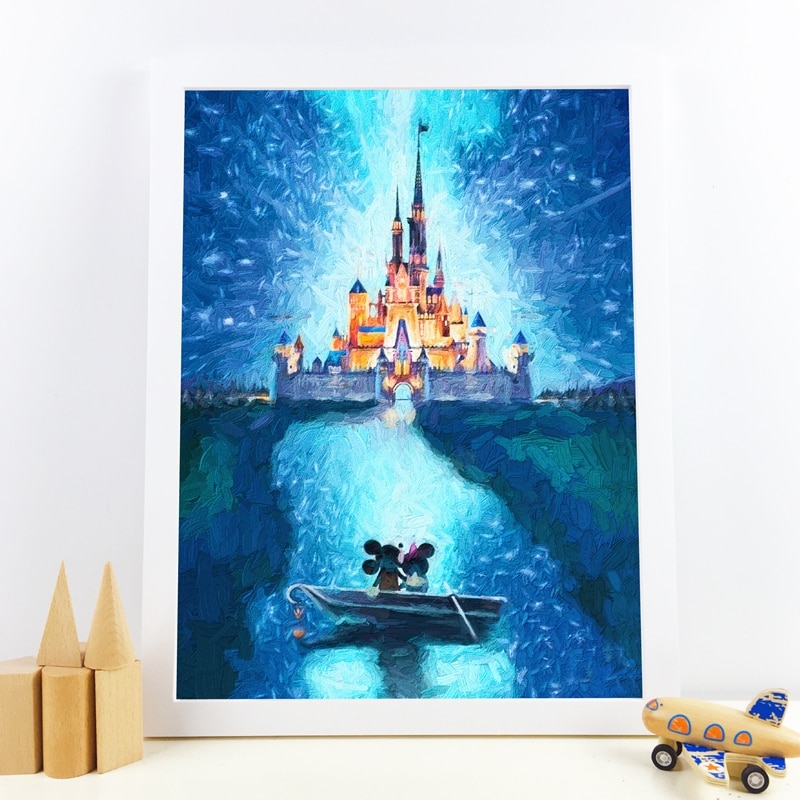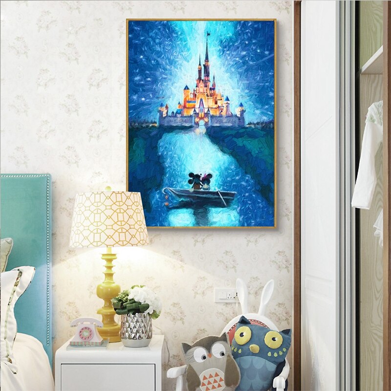 Lovely Poster Mouse Oil Painting Castle Print Romantic Love Canvas Painting Picture Cartoon Nursery Wall Art Decor
