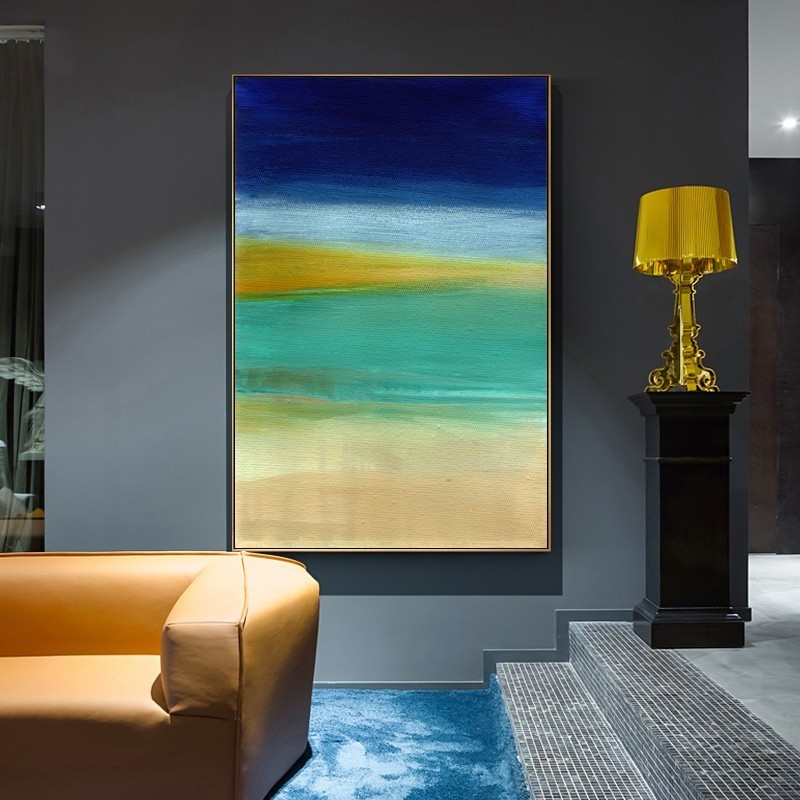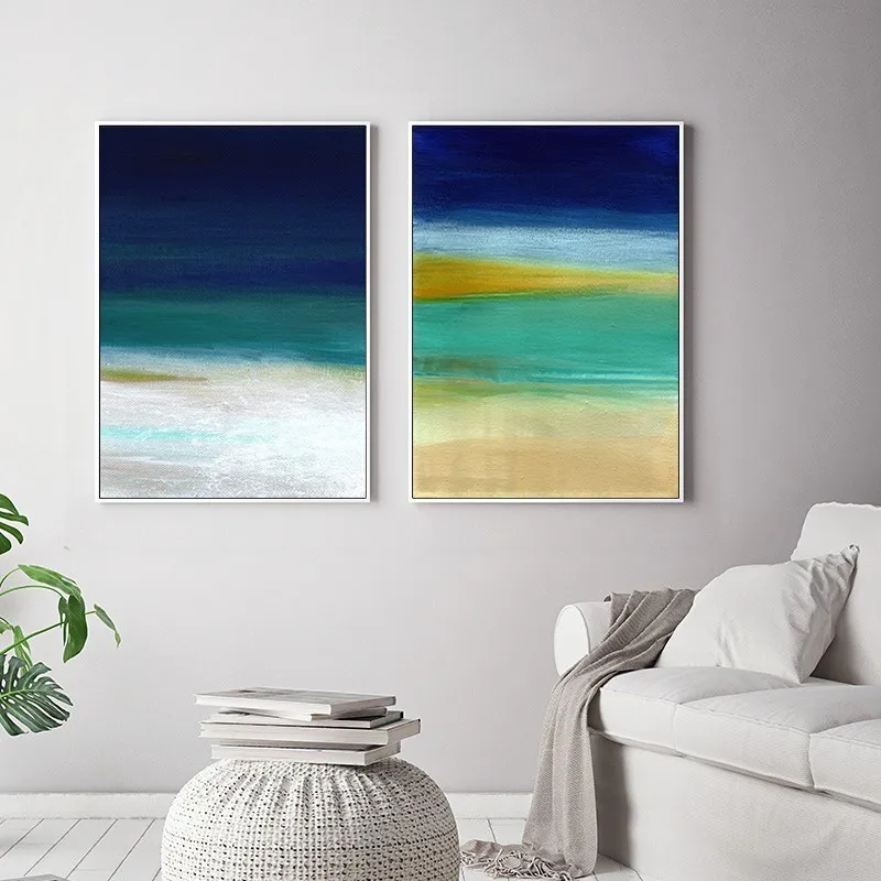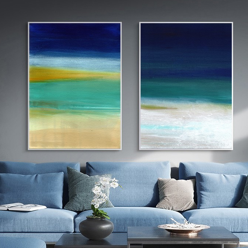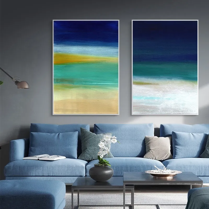 Mid Century Abstract Blue Yellow Color Poster Wall Art Print Canvas Paintings Pictures for Living Room Home Interior Decoration