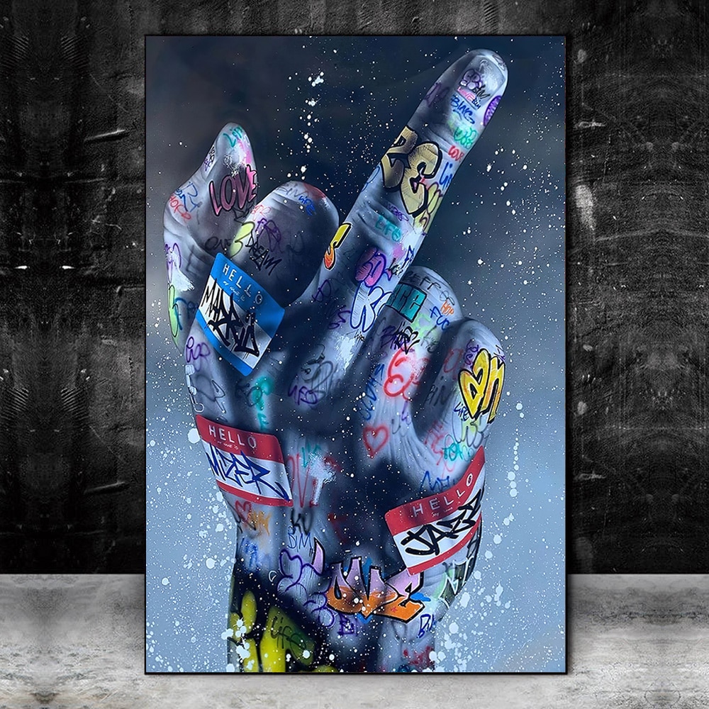 Middle Finger Gesture Street Art Posters and Prints Graffiti Art Paintings on the Wall Art Canvas Pictures Home Wall Decoration