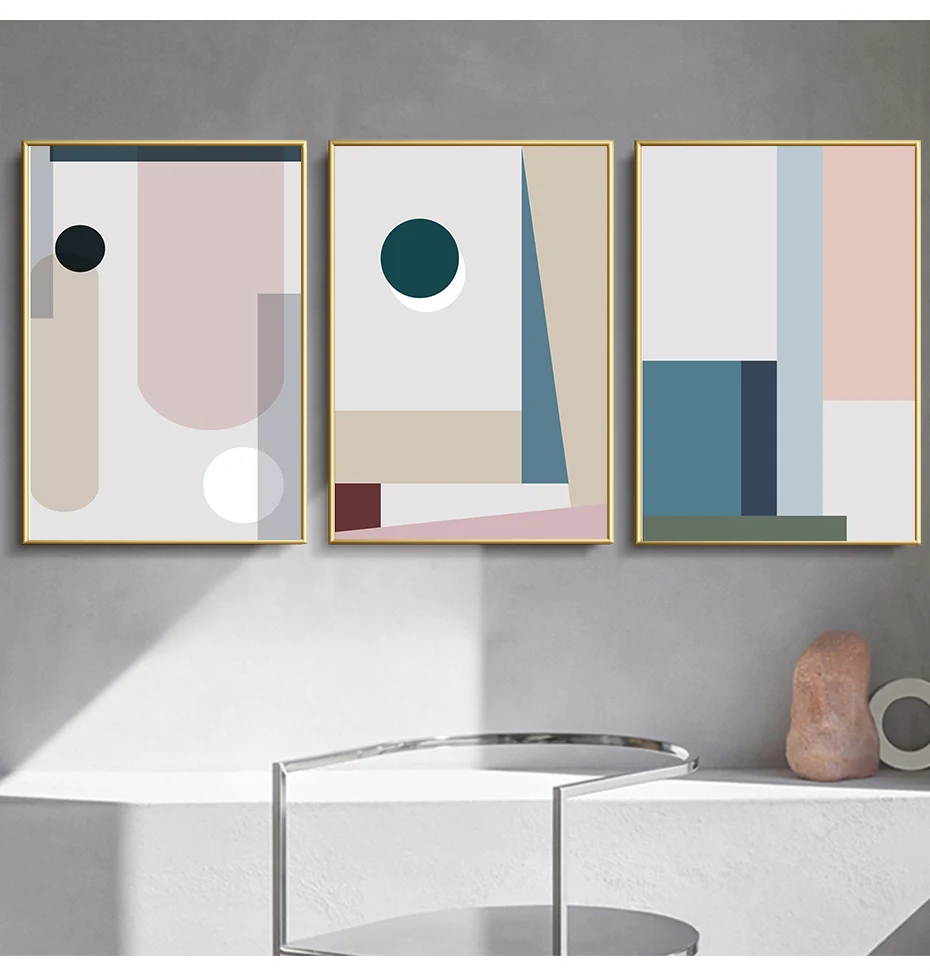 Minimalist Abstract Geometric Pink Blue Canvas Paintings Wall Art Print Poster Picture for Living Room Interior Home Decoration