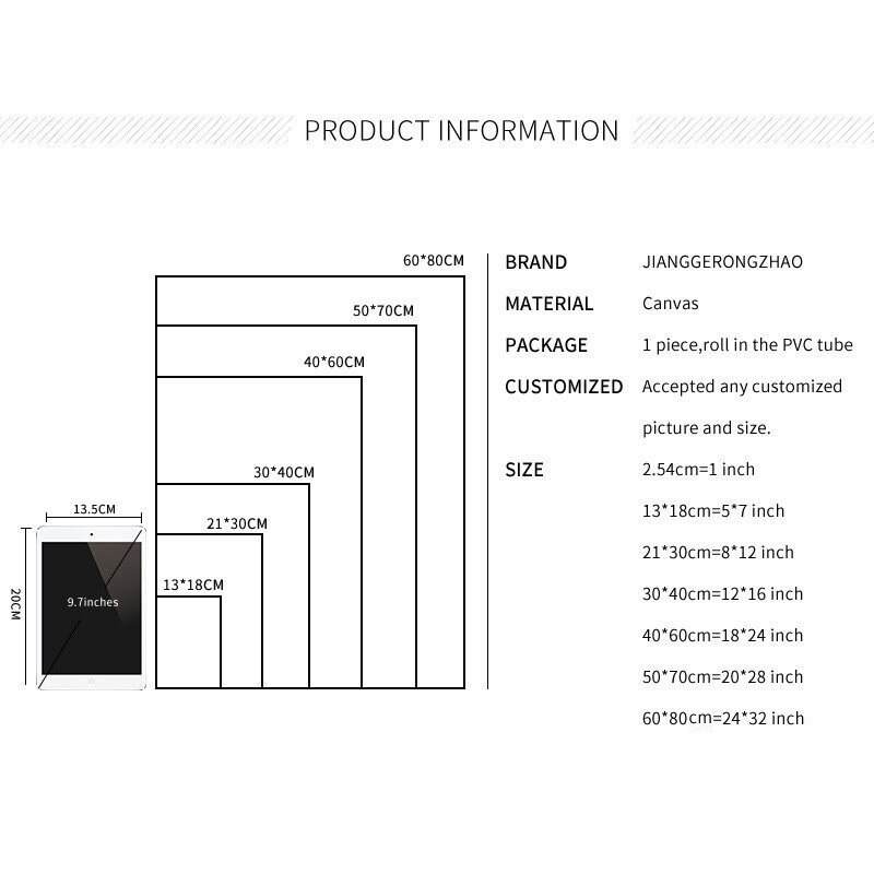 | Size (Inch) | 21x30cm Unframe, 30x40cm Unframe, 40x60cm Unframe, 50x70cm Unframe, 60x80cm Unframe, 10x15cm Unframe, 13x18cm Unframe |