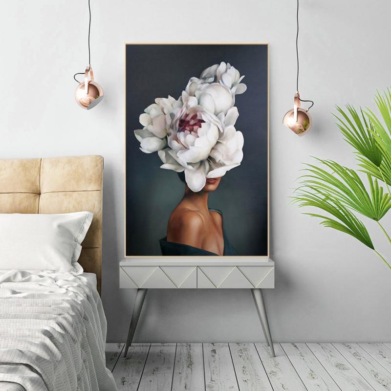 Modern Abstract Canvas Poster Flowers Woman bird wings art Print Poster Picture Wall Living Room Home Decor