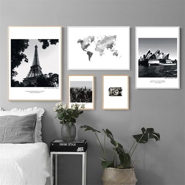 Modern Black And White Wrold Map Paris Landscape Canvas Painting Posters And Prints Wall Art Pictures For Living Room Home Decor