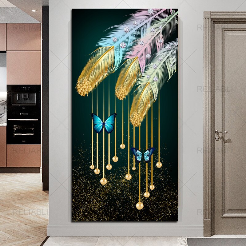 Be the first to review “Modern Blue Gold Feather Butterfly Abstract Canvas Painting Wall Art Print and Poster Picture for Living Room Home Decoration – Color 4”