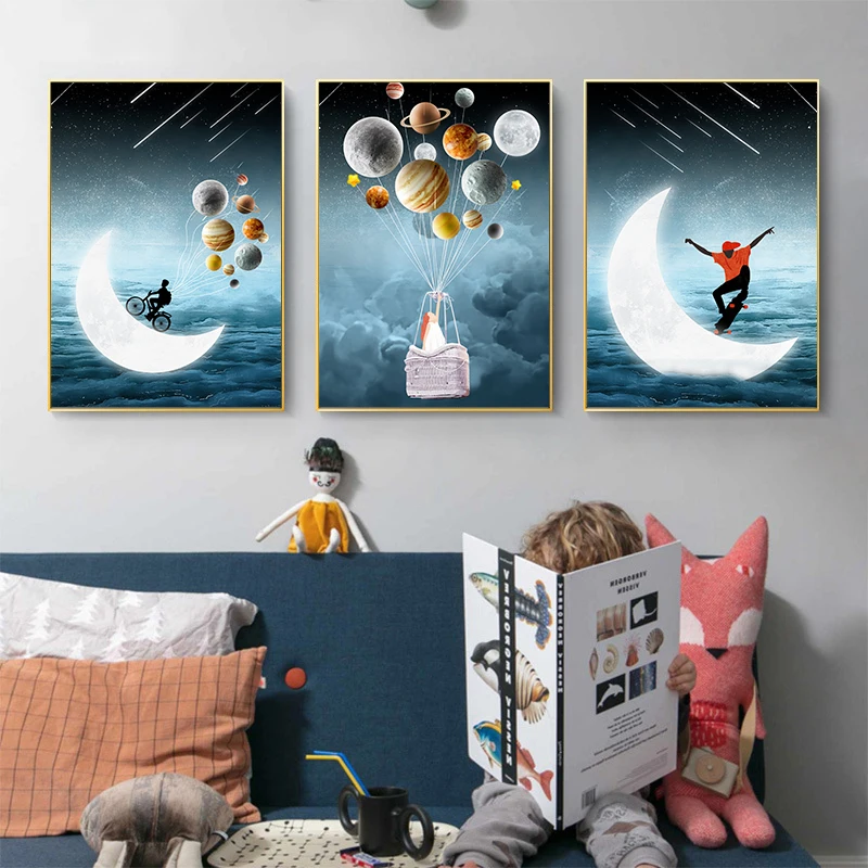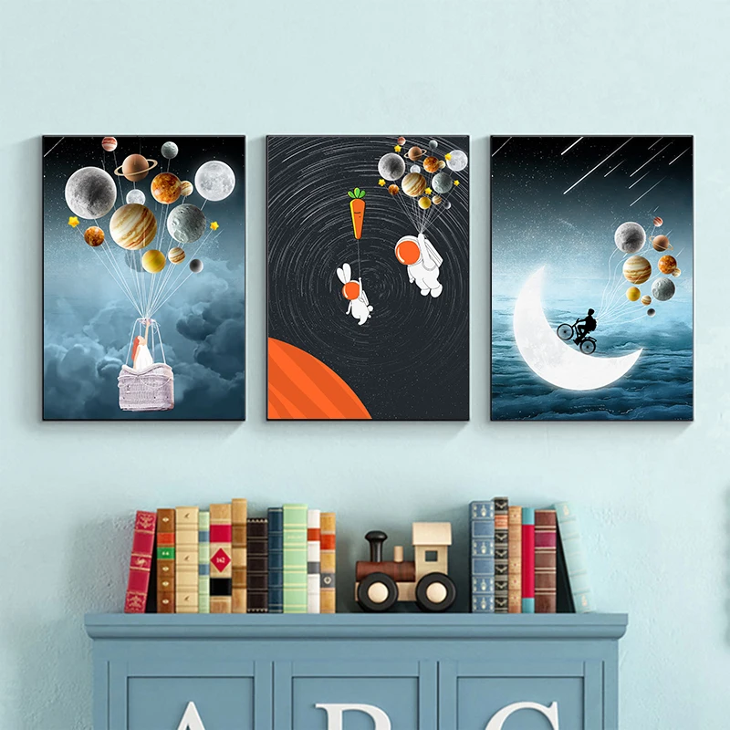 Be the first to review “Modern Cartoon Space Astronaut Planet Children Poster Moon Kindergarten Bedroom Home Decoration Painting Canvas Wall Art Picture”
