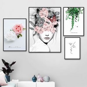 Be the first to review “Modern Flower Leaf Girl Rose Wall Art Canvas Painting Quotes Posters And Prints Line Drawing Wall Pictures For Living Room Decor”