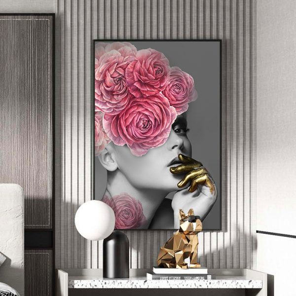 Be the first to review “Modern Flower On The Head With Gold Women Oil Painting On Canvas Print Nordic Poster Wall Art Picture For Living Room Home Decor”