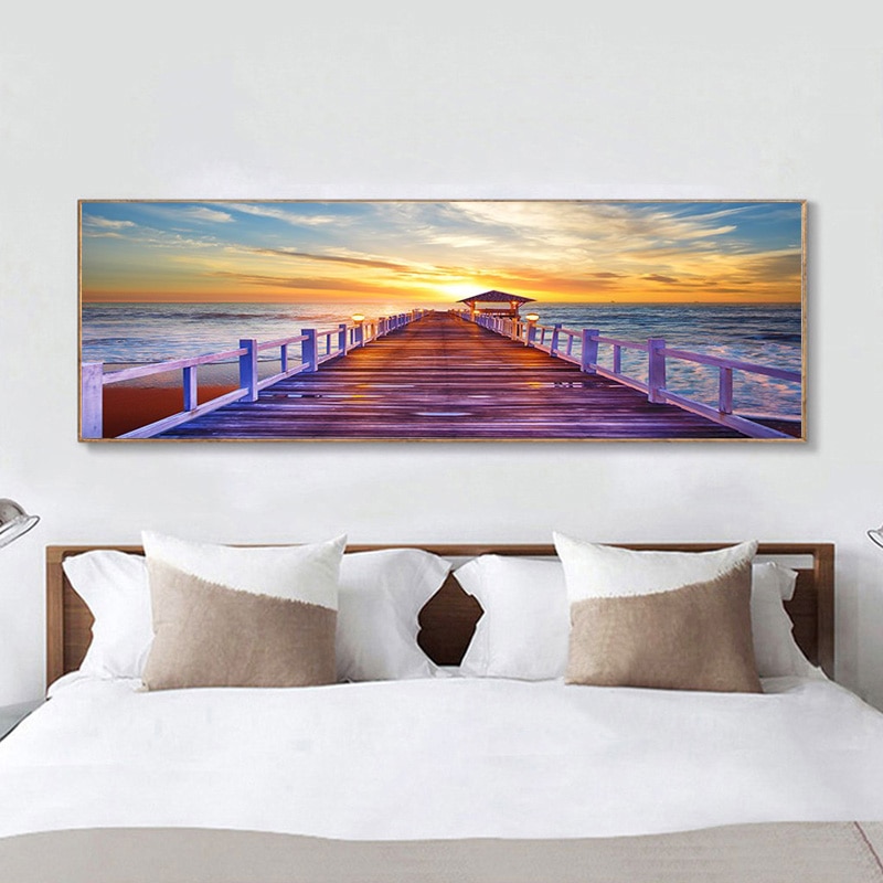 Modern Landscape Posters and Prints Bridge Sunset Ocean Wall Art Canvas Painting Wall Pictures for Living Room Home Decor Quadro