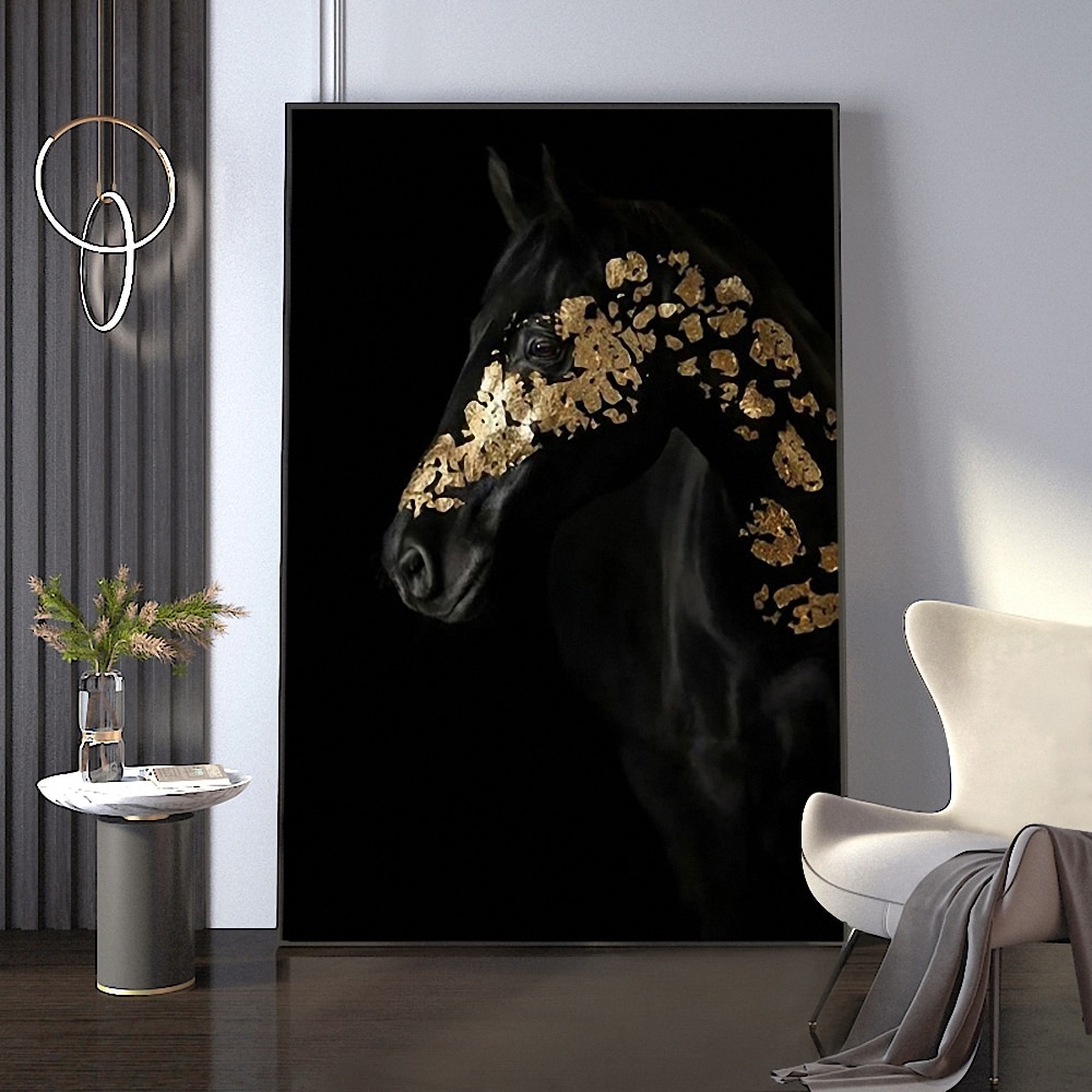Be the first to review “Modern Luxury Black Gold Horse Wall Art Picture Print Canvas Painting Gold Leaf Steed Animal Poster For Living Room Home Decor”