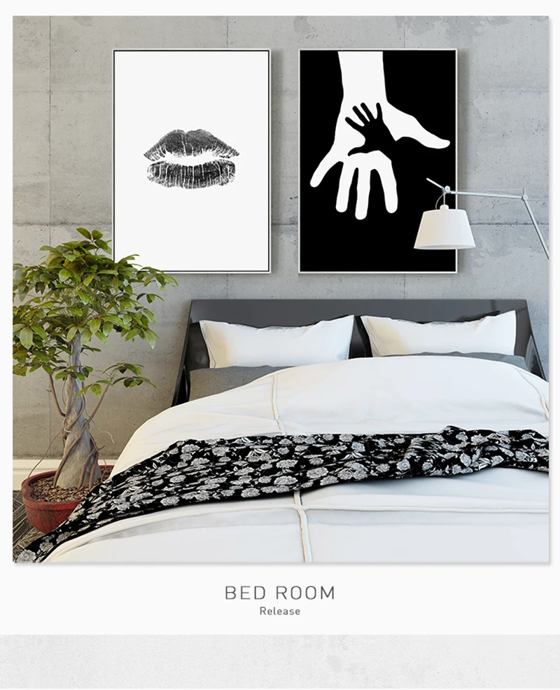 Modern Minimalist Abstract Girl Canvas Painting Black White Lip Hand Wall Art Posters and Prints Wall Picture for Living Room