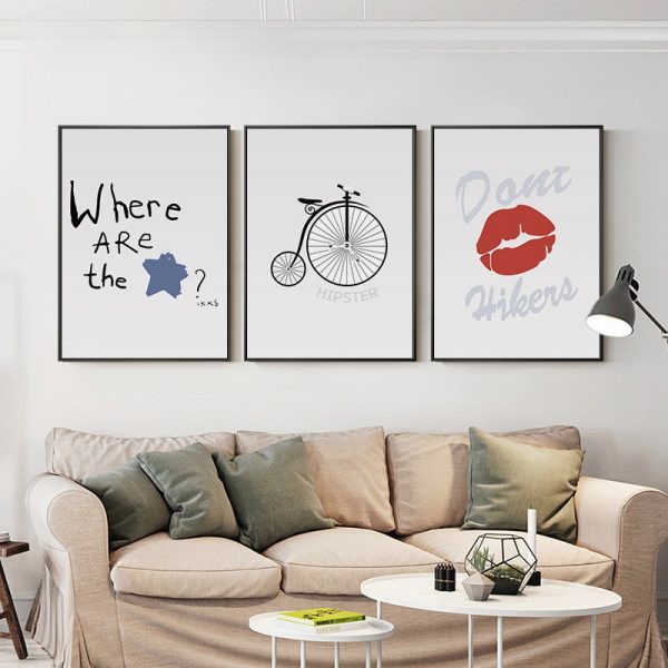 Be the first to review “Modern Minimalist Red Lip Wall Art Canvas Painting Abstract Bicycle Black White Poster Print Picture for Living Room Home Decor”
