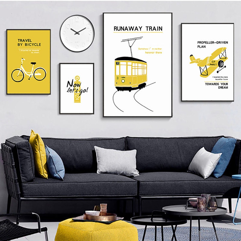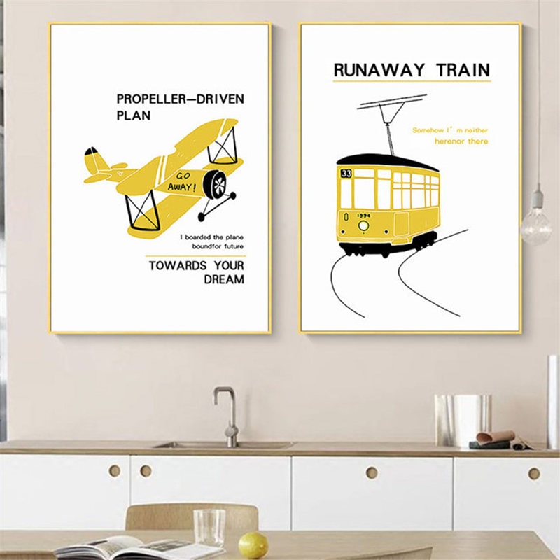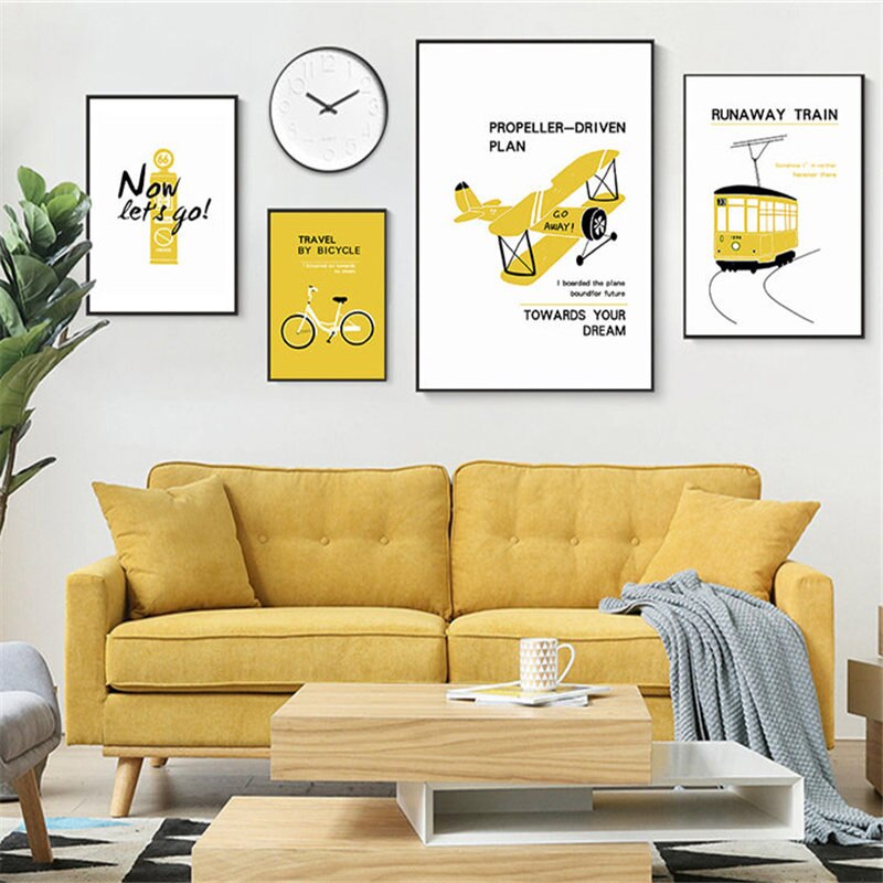 Modern Personalized Picture Home Decor Nordic Canvas Painting Wall Art Poster Cartoon Travel Tool Yellow Decor Print for Bedroom