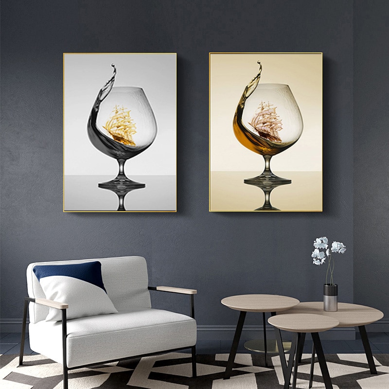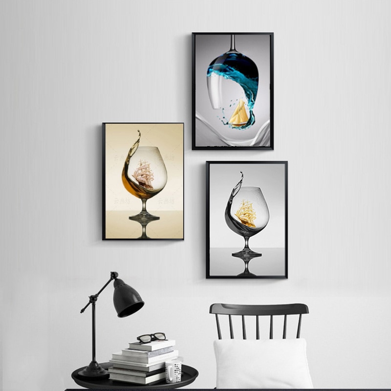 Be the first to review “Modern Romantic Wine Glass With Sailboat Abstract Canvas Art Wall Picture For Gallery Dining Room Bar Home Decor Poster No Frame”