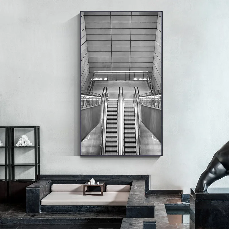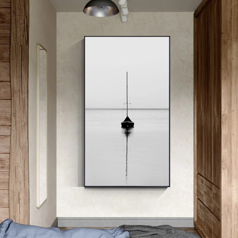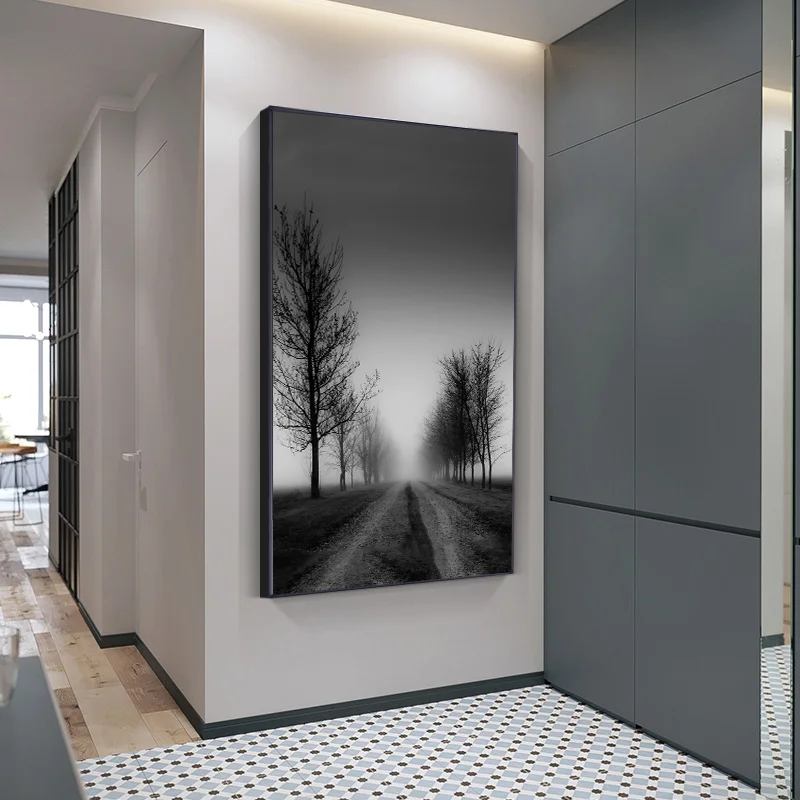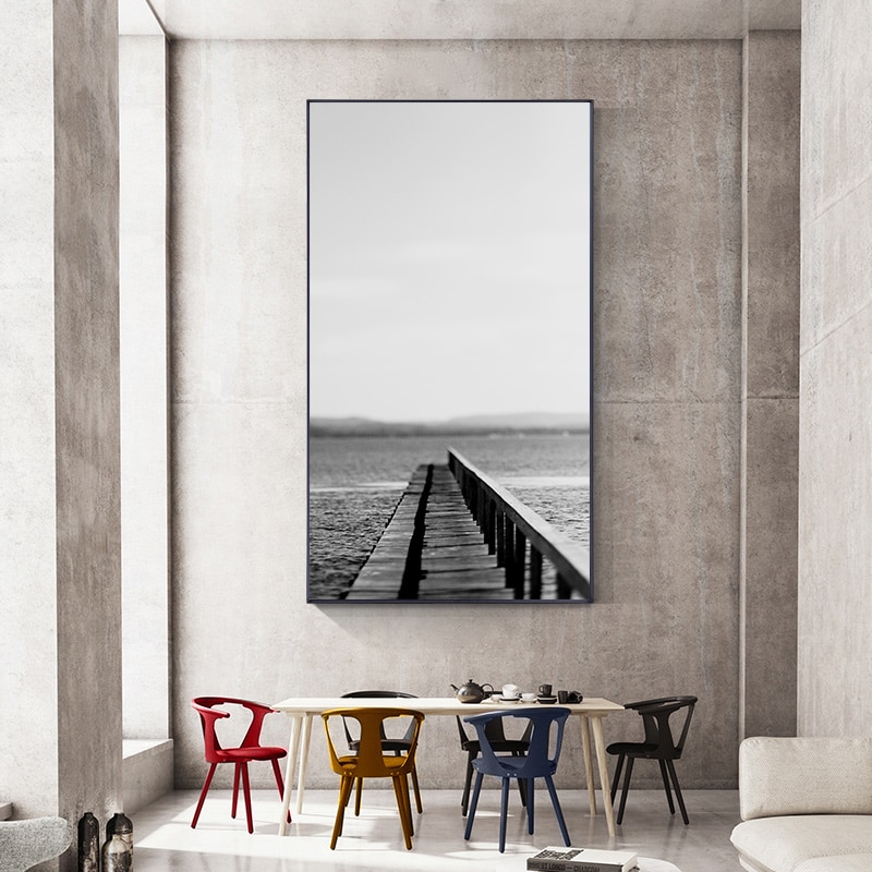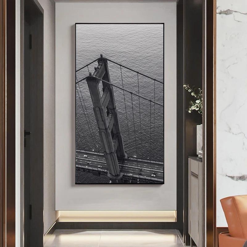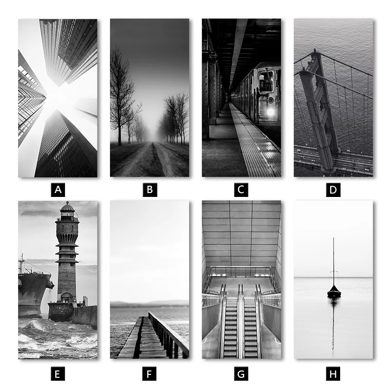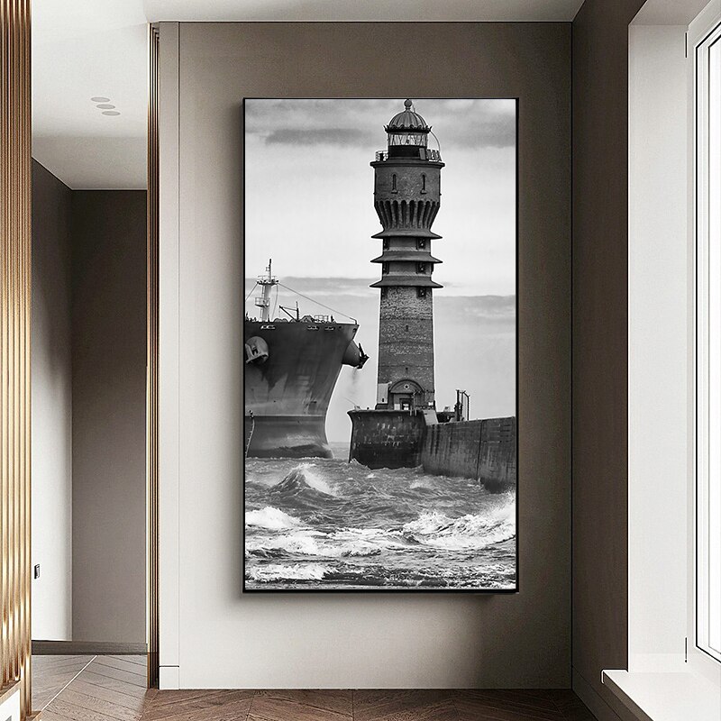 Modern Rural Landscape Poster Black and White Canvas Print Picture Building Bridge Lighthous Wall Art Painting Living Room Decor