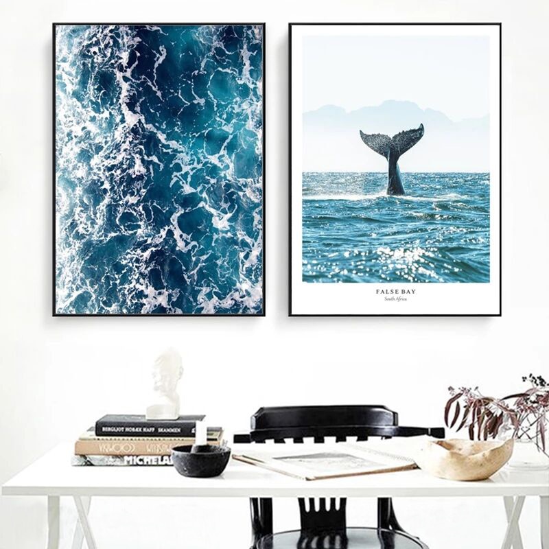 Modern Seascape Ocean Waves Wall Art Canvas Painting Whale Tail Posters and Prints Wall Pictures for Living Room Home Decor