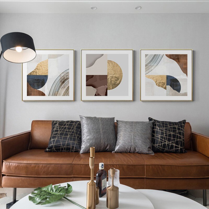 Modern style decorative painting geometric collage design canvas painting new abstract bedroom wall art poster luxury gold foil