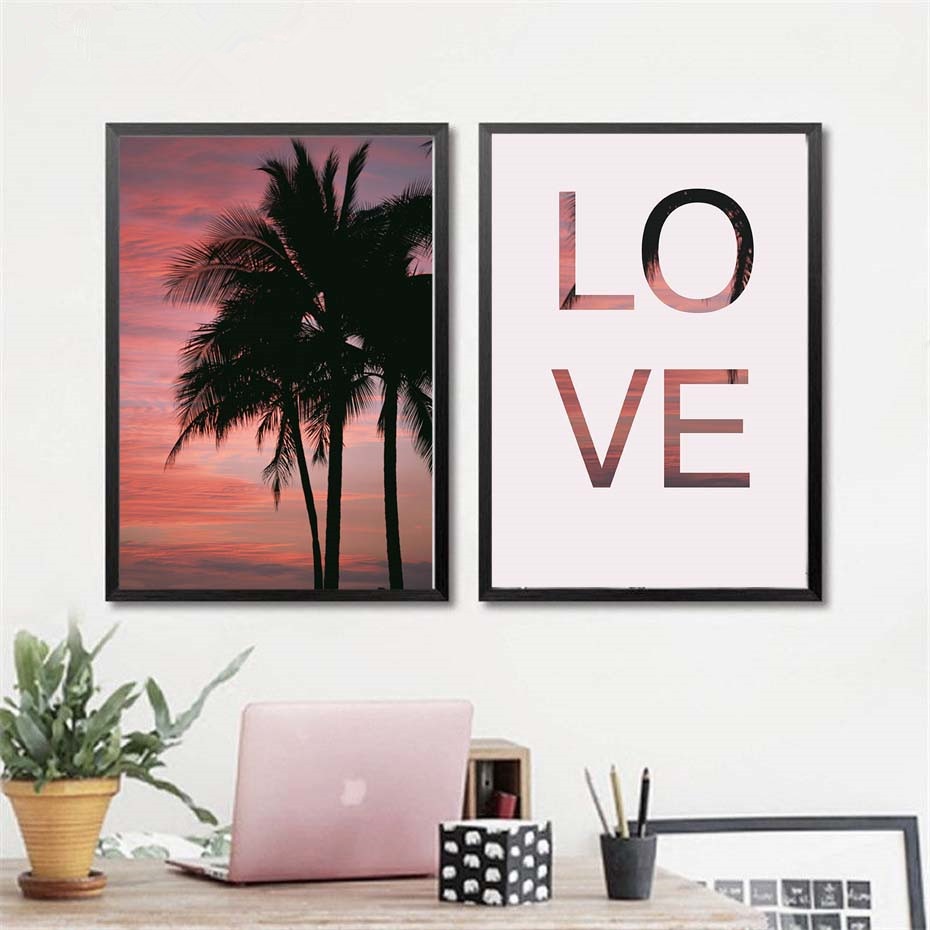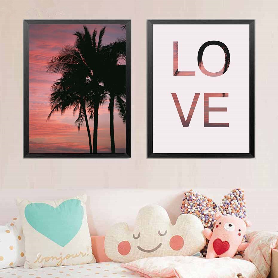 Modern Sunset Romantic And Beautiful Love Words Printed Canvas Painting Living Room Wall Art Landscape Pictures No Frames