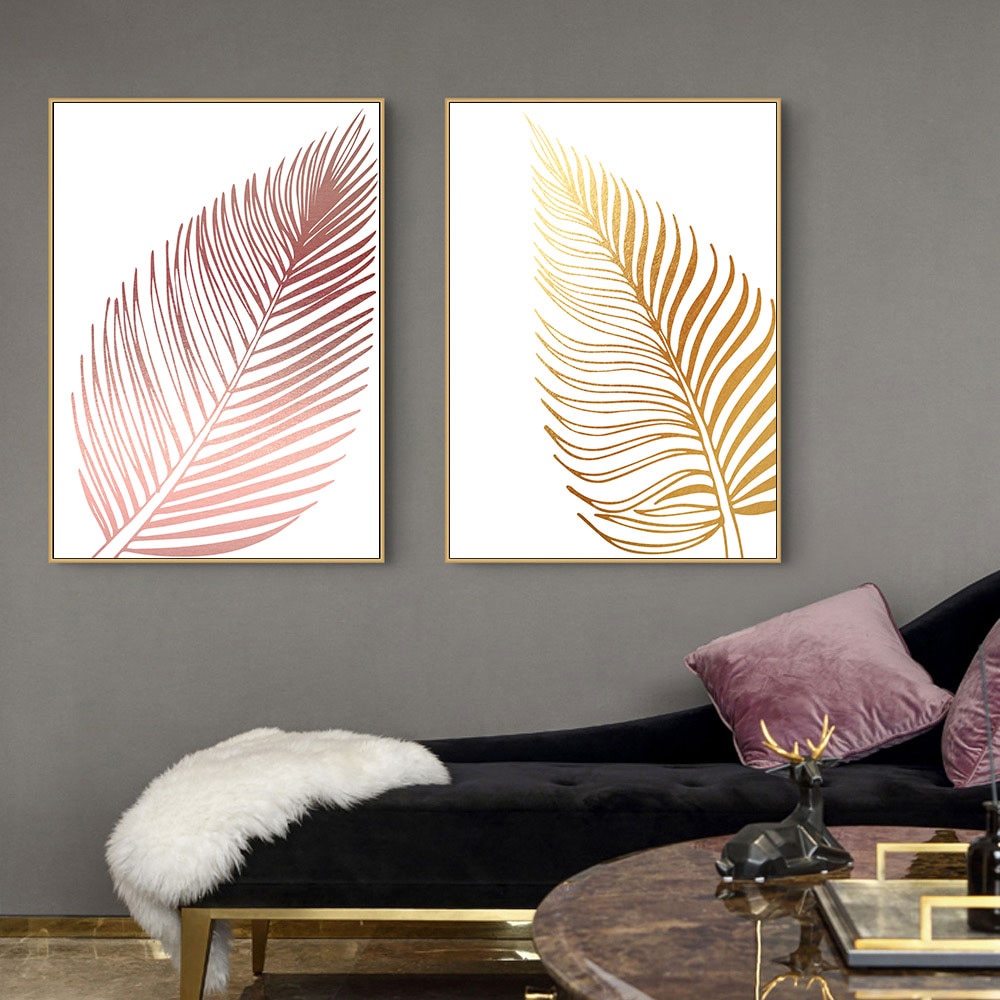 Mondern Pink And Gold Leaves Canvas Posters And Print Wall Art Pictures Design For Living Room Bedroom Home Decor No Frame
