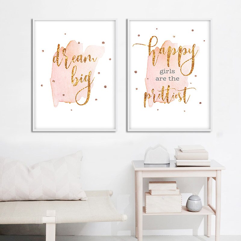 Motivational Text Quote Poster Canvas Nursery Print Simplicity Art Painting Golden Wall Picture Nordic Kids Baby Bedroom Decor