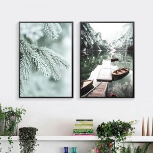 Mountain Lake Boat Canvas Painting Scandinavian Nature Landscape Poster Nordic Style Print Wall Art Picture Home Gallery Decor