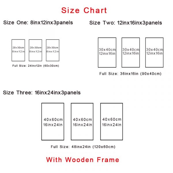 | Size (Inch) | 8x12inx3pcs Framed, 12x16inx3pcs Framed, 16x24inx3pcs Framed |