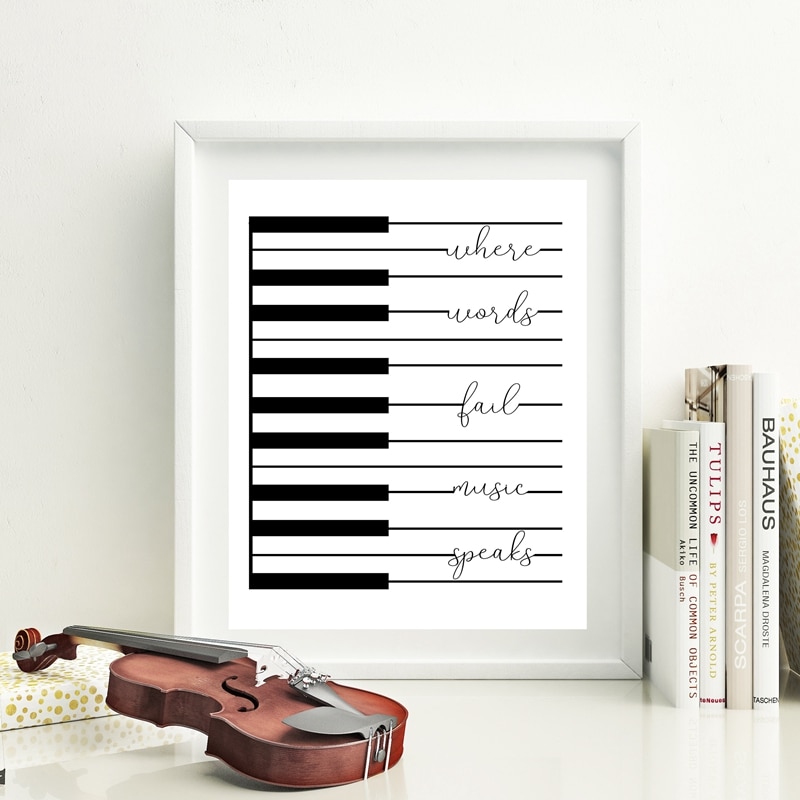 Music Piano Canvas Prints “Where Words Fail Music Speaks” Quote Poster Modern Art Painting Picture Wall Decor Musician Gifts
