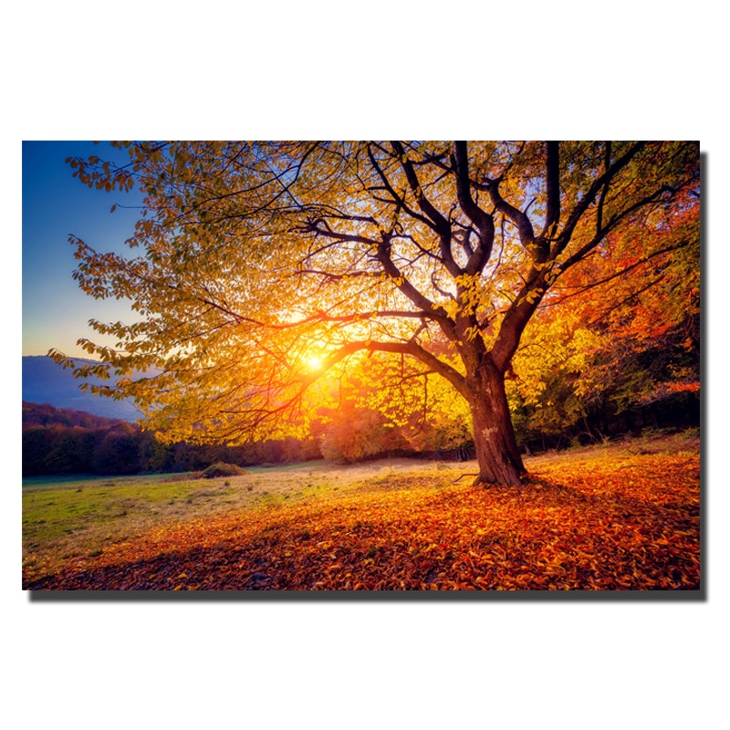 Nature Landscape Sunset Beautiful Scenery Posters Tree Canvas Painting on Wall for Living Room Decor No Frame