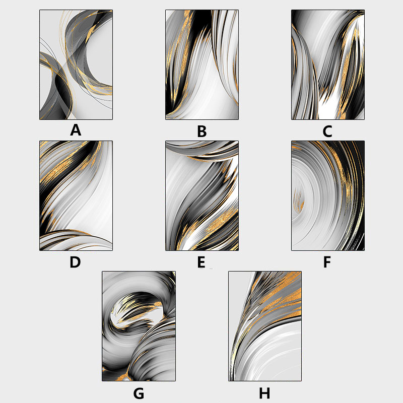 No Framed Abstract Black and Gold Line Canvas Painting Prints Modern Wall Decorative Posters for Living Room Bedroom Home Decor