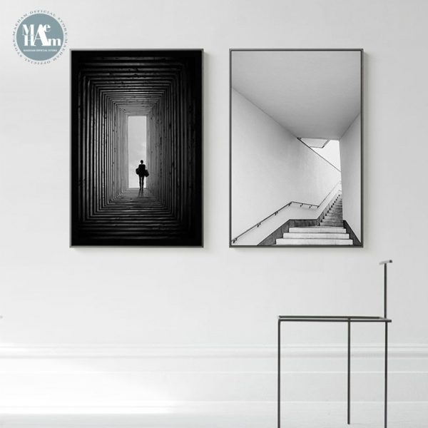 Be the first to review “Nordic Black and white building staircase wall art Canvas Painting posters Prints wall Picture for Living Room Morden Home Decor”
