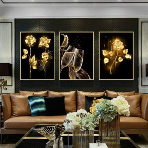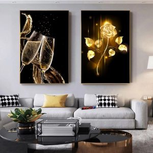 Be the first to review “Nordic Black Gold Flower Red Wine Glass Living Room Restaurant Canvas Painting Hotel Wall Art Decoration Poster Home Decor”