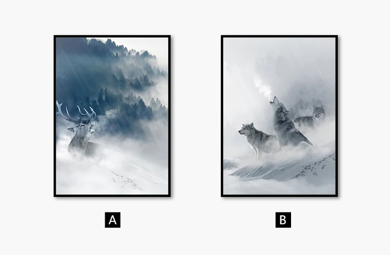 Nordic Black White Animal Poster Wolf Elk Wall Art Canvas Painting Forest Snow Mountain Print Picture for Living Room Home Decor