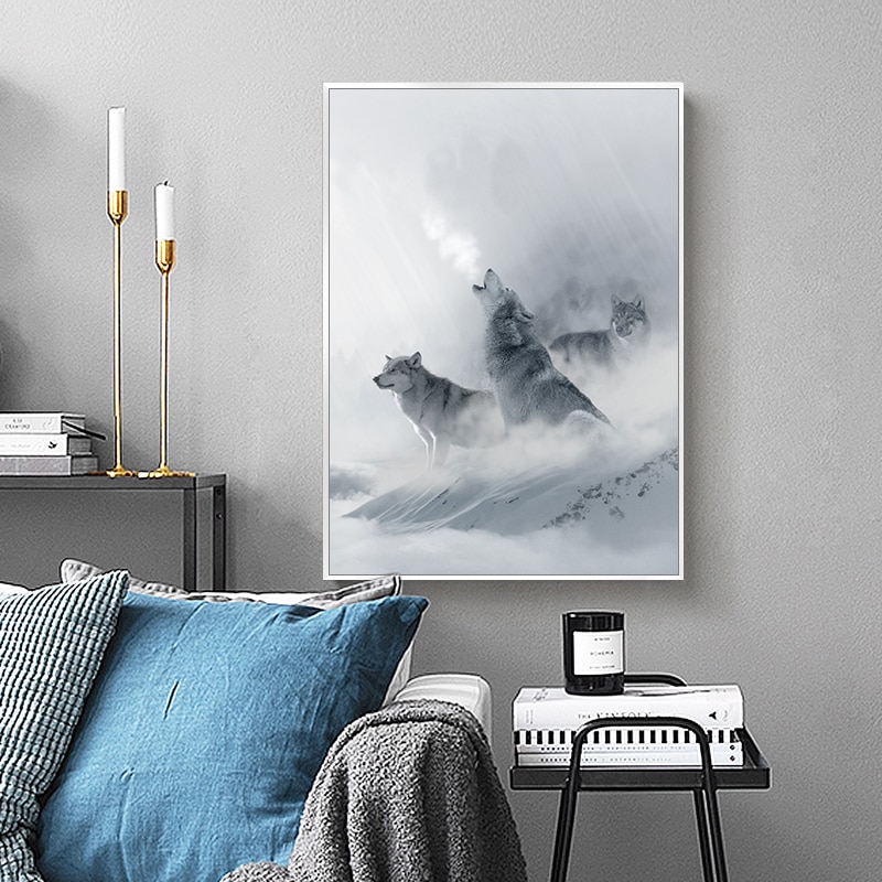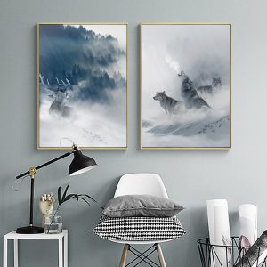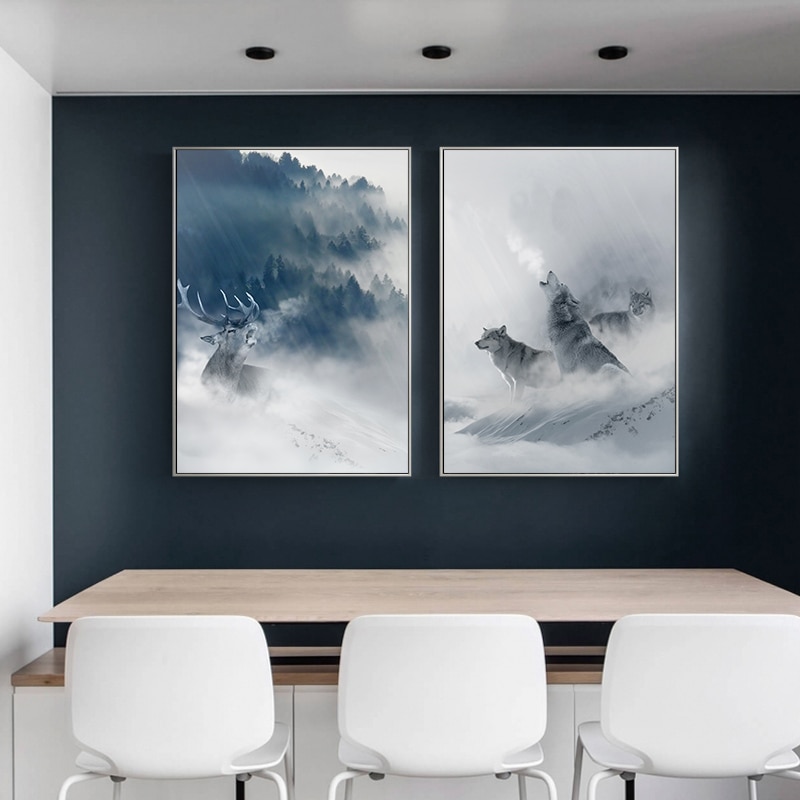 Nordic Black White Animal Poster Wolf Elk Wall Art Canvas Painting Forest Snow Mountain Print Picture for Living Room Home Decor