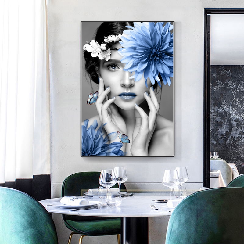 Be the first to review “Nordic Blue Flowers Beauty Model Canvas Prints Woman Posters Wall Art Canvas Paintings Pictures Girls Bedroom Home Decoration”