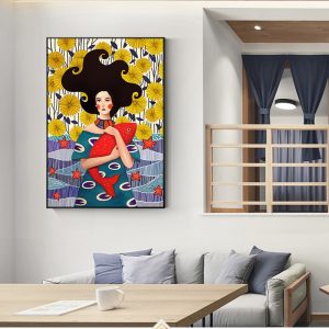 Be the first to review “Nordic Canvas Painting Cartoon Girl and Fish Posters Prints Quadros Wall Art Romantic Picture Living Room Home Decor Cuadros”
