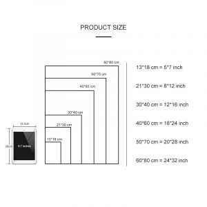 | Size | 13x18cm,21X30cm,30x40cm,40x50cm,50x70cm,60x80cm, or customized |