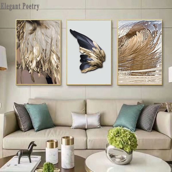 Be the first to review “Nordic Decor Feathers Canvas Painting White Poster And Print Unique Modern Golden Wings Wall Art For Living Room Bedroom Aisle”