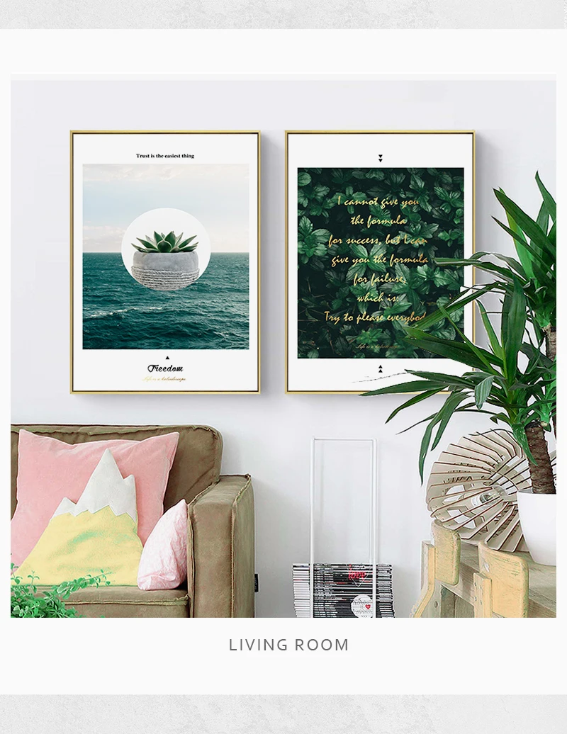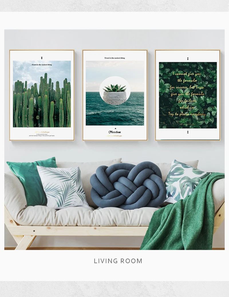 Nordic Decoration Green Leaf Plant Wall Art Canvas Painting Ocean Poster Cactus print Decorative Picture Living Room Home Decor