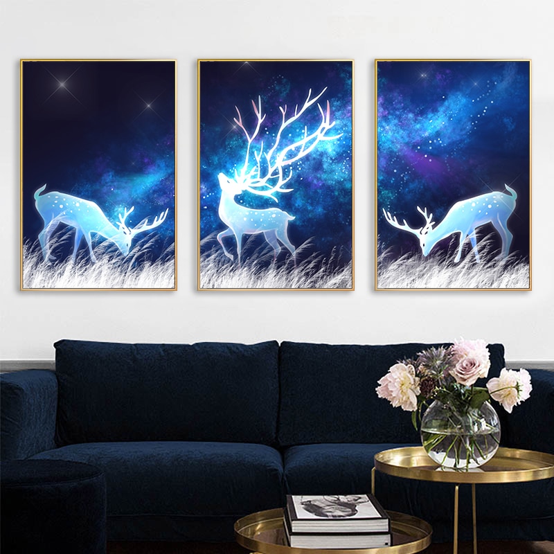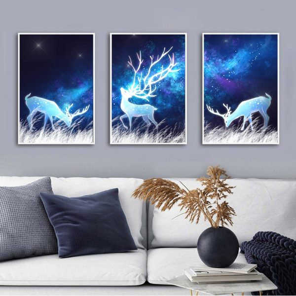 Be the first to review “Nordic Fantasy Elk Canvas Poster Abstract Painting starry Night Wall Art Print Wall Pictures for Living room Modern Home Decor”
