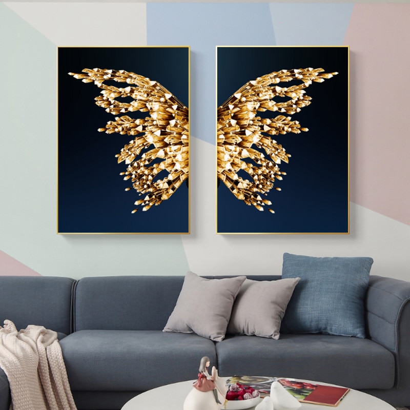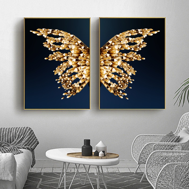 Nordic Golden Butterfly Wing Picture Canvas Painting Abstract Posters and Prints Wall Picture for Living Room Home Decor Cuadros