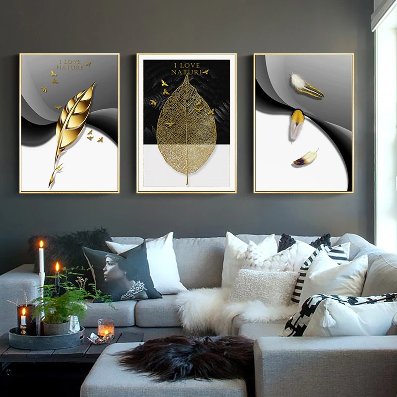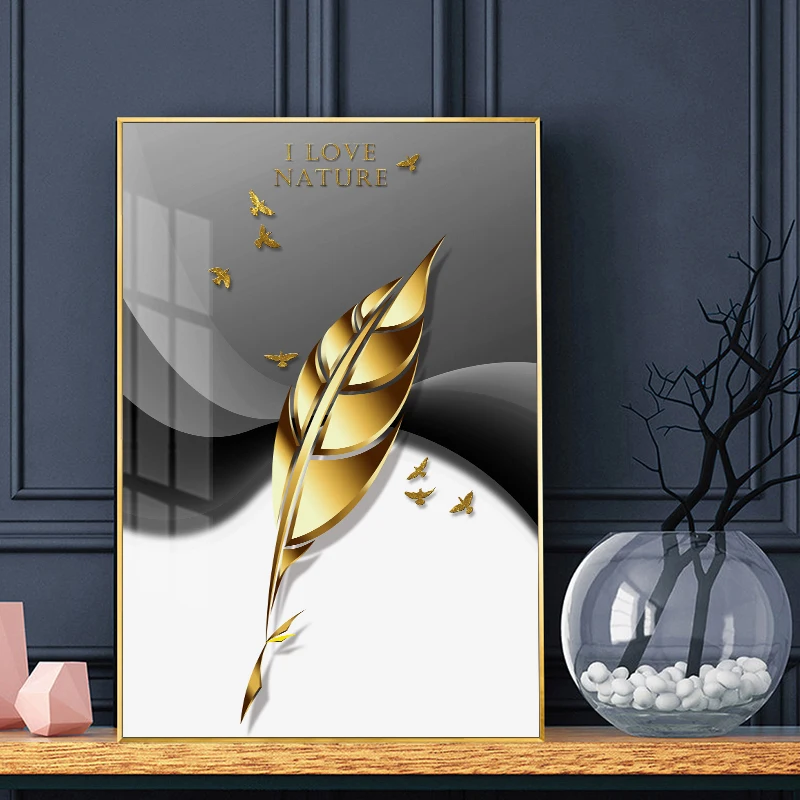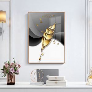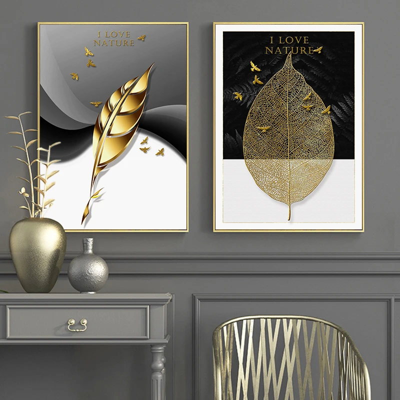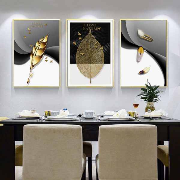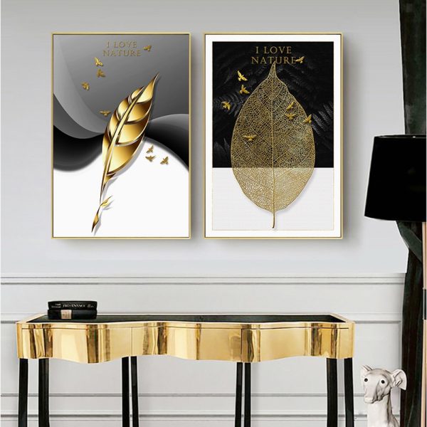 Be the first to review “Nordic Golden Leaves Canvas Poster Feather Bird Abstract Painting Wall Art Print Decorative Pictures for Living room Home Decor”