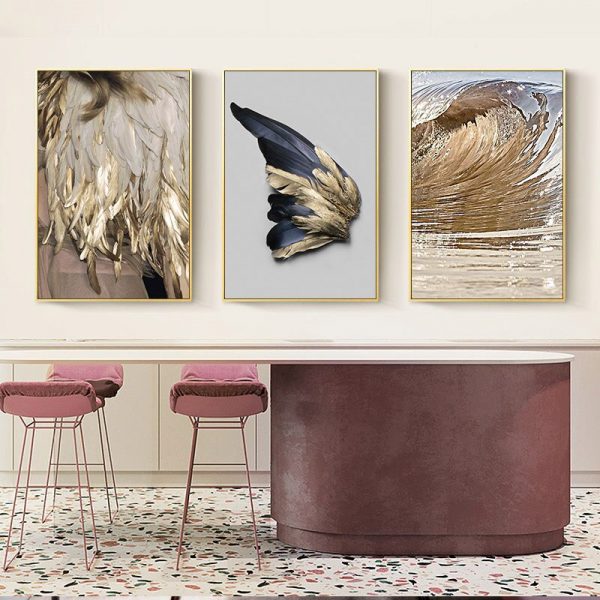 Be the first to review “Nordic Modern Gold Feather Canvas Painting Golden Wings Ocean Waves Posters And Prints Wall Art Pictures For Living Room Bedroom”